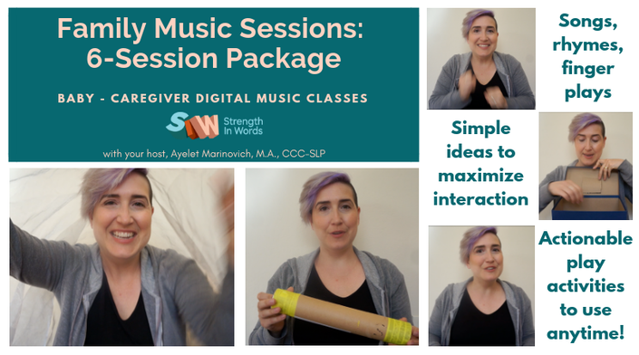Family Room Enrichment Classes focus on communication strategies, language learning, and early development. They are just as much about parent learning and connection as they are for your child! Classes are led by Ayelet Marinovich, M.A., CCC-SLP, a pediatric speech-language pathologist, parent educator, parent of young children, and singer.